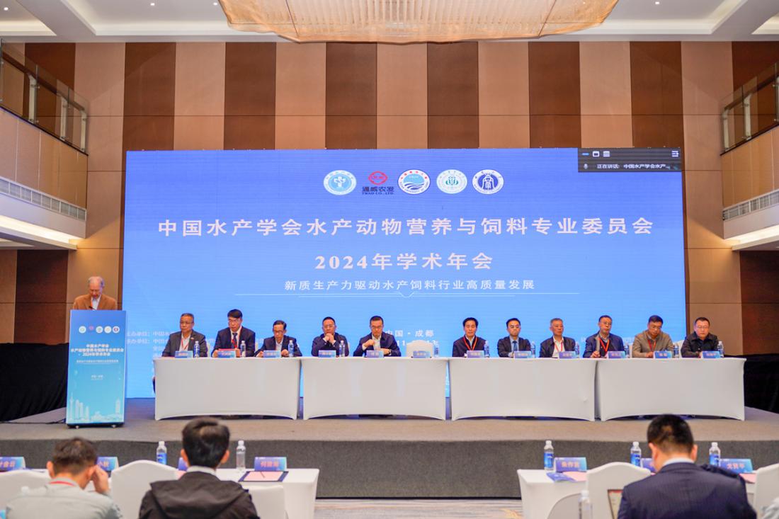 2024年11月11-13日,由中国水产学会主办,中国水产学会水产动物营养与饲料专业委员会、全国动物营养指导委员会水产动物营养分会、通威农业发展有限公司、中国海洋大学、四川农业大学、西南大学、山东龙昌动物保健品股份有限公司和广东海大集团股份有限公司承办的中国水产学会水产动物营养与饲料专业委员会2024年学术年会在四川成都盛大举行。本次年会以“新质生产力驱动水产饲料行业高质量发展”为主题,我校作为承办单位之一,邀请了水产动物营养与饲料领域高校、科研院所专家学者及企业代表近500余人参会。围绕营养与代谢、营养与品质、亲本与幼体营养、新型饲料原料与添加剂的研发与应用、水产微生态营养以及智能加工与投喂技术等主题进行了报告和交流。本次年会旨在通过学术交流、成果展示和技术研讨,推动新型饲料原料的研发、营养与代谢的精准优化、智能化投喂技术的应用等方面的创新,从而创造行业“新质生产力”,推动行业快速发展。