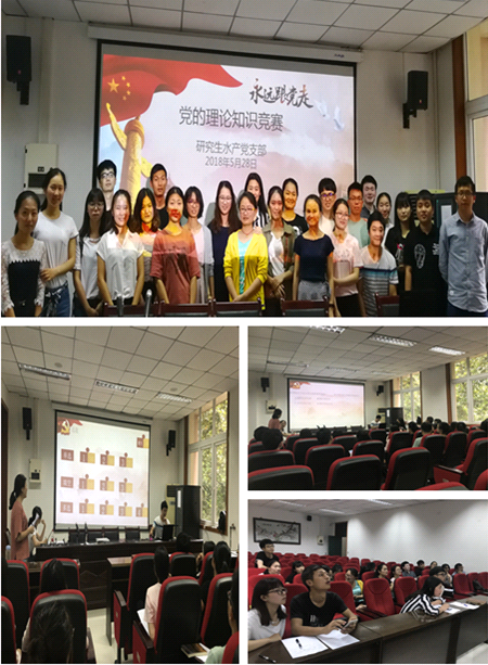 为进一步深刻领会党的十九大精神,激发党员学习党章、遵守党章、贯彻党章、维护党章的自觉性,2018年5月28日下午2:30,研究生水产党支部在37教218室开展了“学习贯彻党的十九大精神”知识竞赛活动。