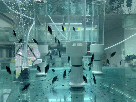 2024年6月李云团队在西南大学水产工程技术研究中心北碚校内鳜鱼繁育系统,成功创制首批全雌鳜苗种种质素材,实现了重庆市长江原种F2代全雌鳜苗种繁育的突破,预期全雌苗种规格更整齐,生长速度比雄鱼更快。首批全雌鳜是6月1日将团队前期创制的长江鳜原种F1代性逆转的伪雄鱼与原种F1代正常性成熟雌鱼进行人工授精获得,首批受精卵约10万枚,成功出膜、开口(图1)。12日又成功进行了第二批全雌鳜苗种人工繁育,目前鳜苗已长到夏花规格(图2)。 6月21日重庆市农业农村委专家到西南大学北碚校内鳜鱼孵化、繁育设施进行了现场验收指导(图3、图4)。