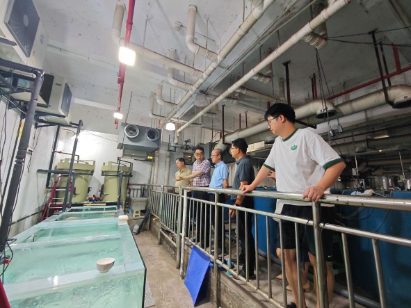 图4. 专家在校内鳜鱼苗种繁育设施现场