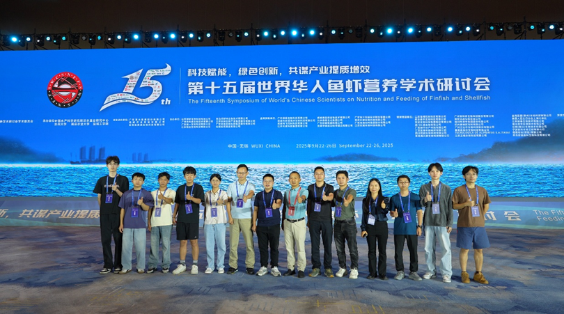 2025年9月22~26日,江苏无锡,西南大学水产动物营养与饲料团队师生13人参加了第十五届世界华人鱼虾营养学术研讨会(简称“世华会”)。本次大会汇聚了来自全球各地的鱼虾营养学领域科研工作者和产业界代表2000余人,围绕“科技赋能,绿色创新,共谋产业提质增效”主题,探讨水产动物营养与饲料领域的关键技术和发展前沿,为我国水产饲料的高质量发展献计献策。