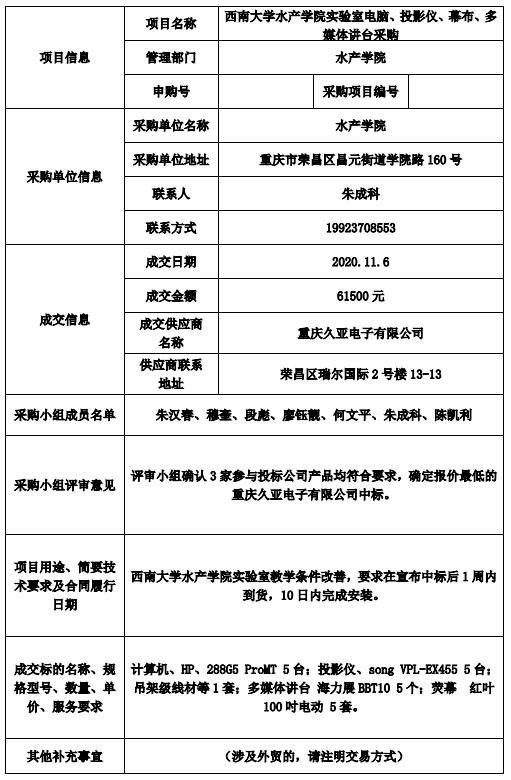 西南大学分散采购结果公示