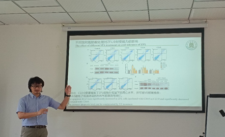 高坚教授以斑马鱼为研究对象,从研究背景、思路、内容以及成果等方面向大家详细介绍了延长酶1、延长酶3在不饱和脂肪酸合成中的重要作用。高教授分享的研究内容可以说是环环相扣,学生也是收获满满。分享结束后,在场师生就自己的兴趣和疑问之处与高教授进行了交流。